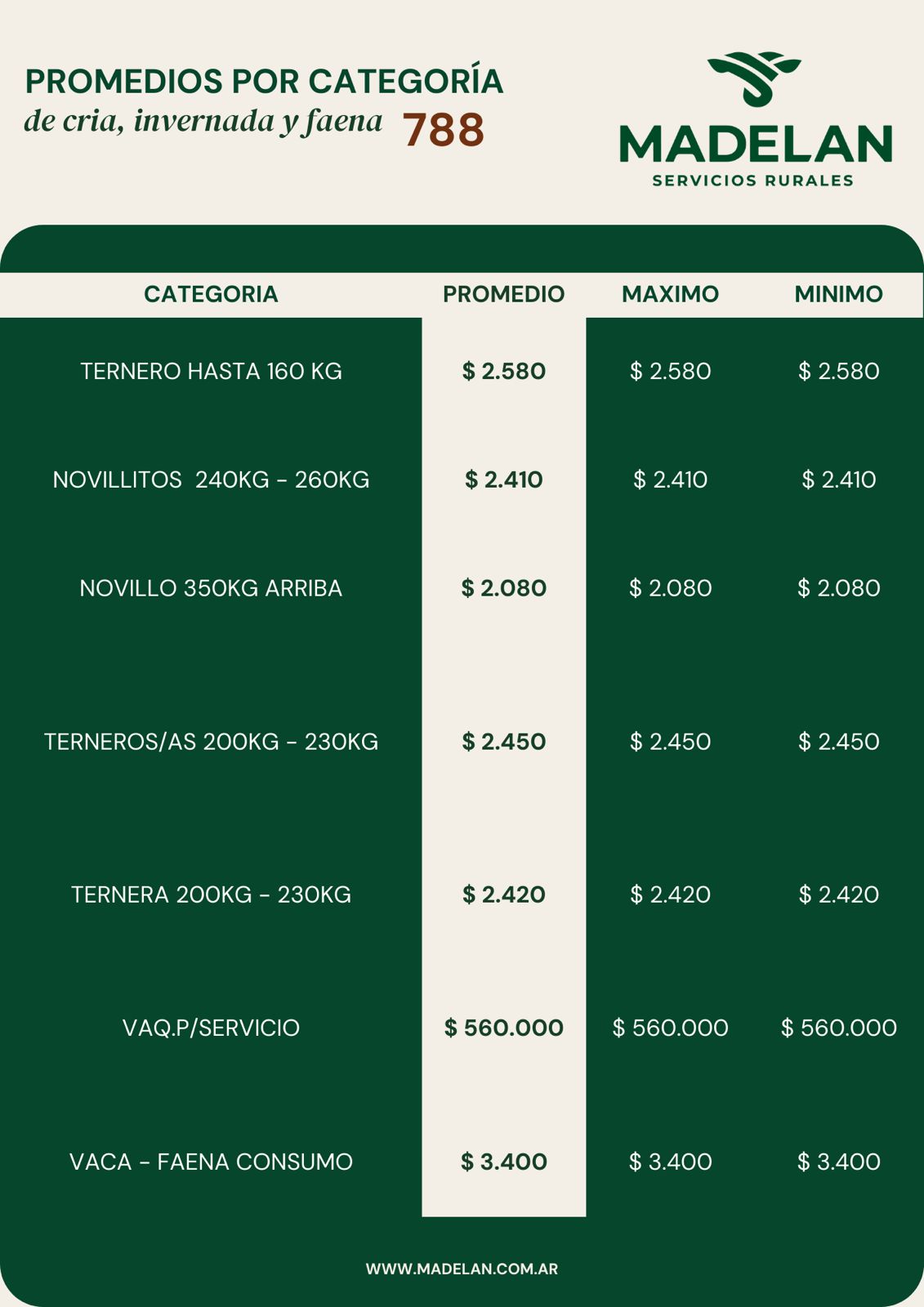 La firma realizó remate de Cria, Invernada y Faena como Martes por Internet y acá te mostramos los resultados: Informe: Ricardo y Rodrigo Romero Madelan General Alvear.